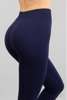 Класичні жіночі лосини безшовні Giulia легінси з мікрофібри із широким поясом р. S/M — L/XL XXL, Темно-синій