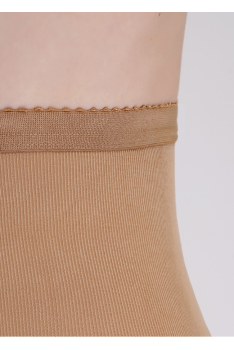Дуже шовковисті колготки з комфортним стягувальним поясом, плоским швом, укріпленим мисиком і гігієнічною ластовицею з бавовни. Подвійна обмотка нитки.