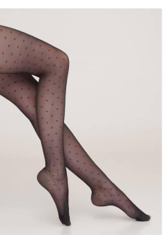 Колготки коллекции “Фантазия“ – Ваша элегантность и индивидуальность. Колготки капроновые 20 ден с узором сердца красного цвета.