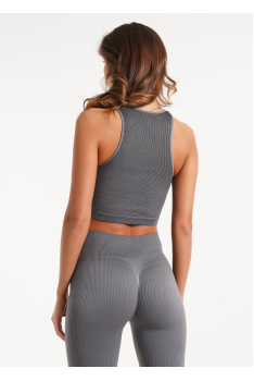 Женский спортивный топ в рубчик GIULIA Halter Top топик для спорта и фитнеса на широких бретелях S/M, Серый