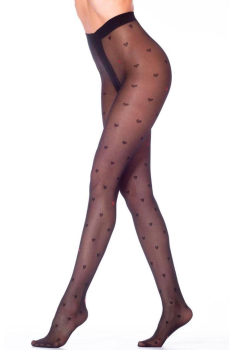 Колготки коллекции “Фантазия“ - Ваша элегантность и индивидуальность. Колготки капроновые 20 ден с узором сердца. Тонкие фантазийные колготки 20 den с рисунком черных и красных сердец по всей длине ножки. Комфортный эластичный пояс, плоские швы, гигиеничная ластовица из хлопка. Двойная обмотка нити.